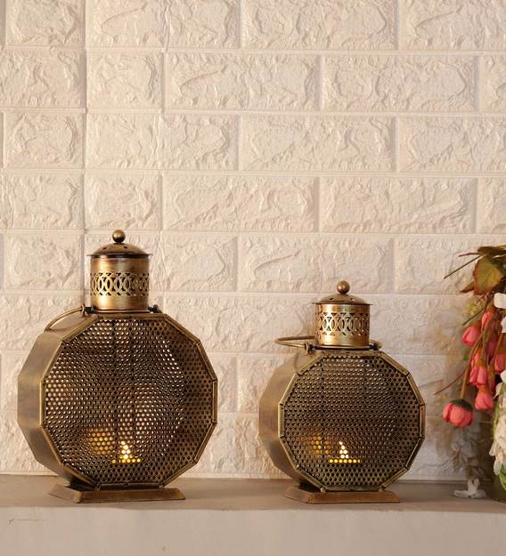 Craftpreneurs India Brown Brass Finish Table Tea Light Holder Set of 2