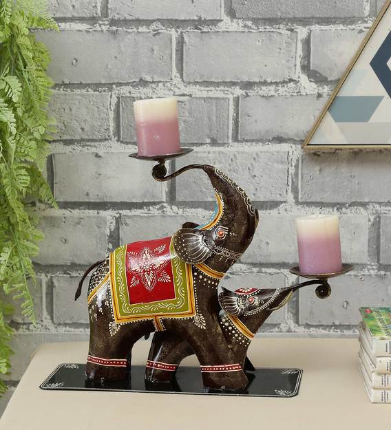 Craftpreneurs India Multicolor Iron Tall Crane Tealight Holder Golden Figurine