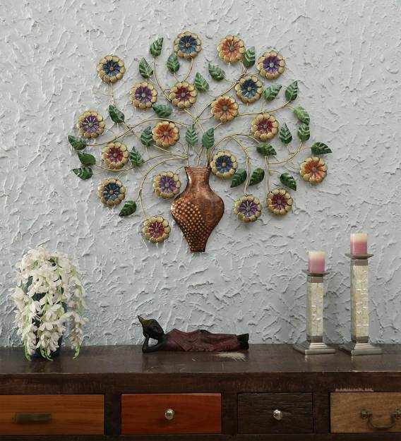 MULTICOLOUR IRON PAINTED WALL FLOWER TREE WITH POT